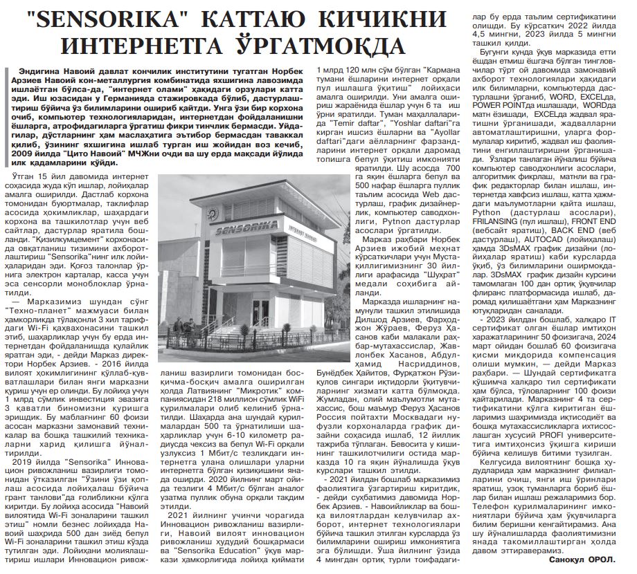 > Navoiy ziyosi gazetasida biz haqqimizda!