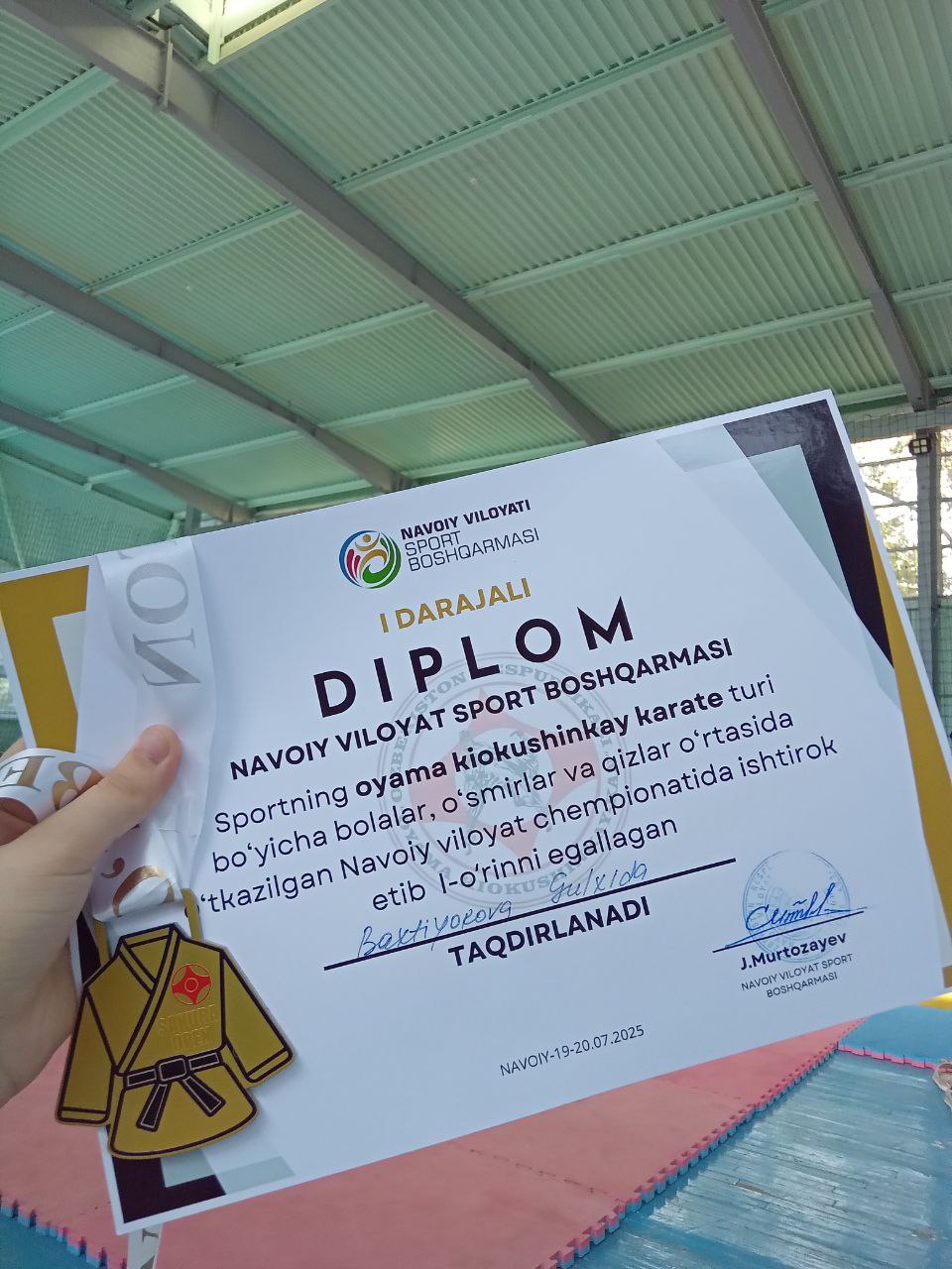 Karate bilan shug'ullanishni boshlaganimdan buyon hayotimda ko'p narsa o'zgardi. Mashg'ulotlar orqali intizom, matonat va qat'iyat kabi muhim fazilatlarni o'zlashtirdim. Har bir mashg'ulot, har bir musobaqa meni yanada kuchliroq qildi. Ko'plab shahar, viloyat va Respublika miqyosidagi musobaqalarda ishtirok etib, faxrli o'rinlarni egalladim. G'alabalarga erishish, medallar bilan taqdirlanish – bu ajoyib tuyg'u. Ammo eng muhimi, mag'lubiyatlardan ham saboq olishni o'rgandim va har doim oldinga intilishdan to'xtamadim. Karate nafaqat jismoniy, balki ruhiy jihatdan ham chiniqtiradi, qiyinchiliklarga qarshi turishga o'rgatadi.