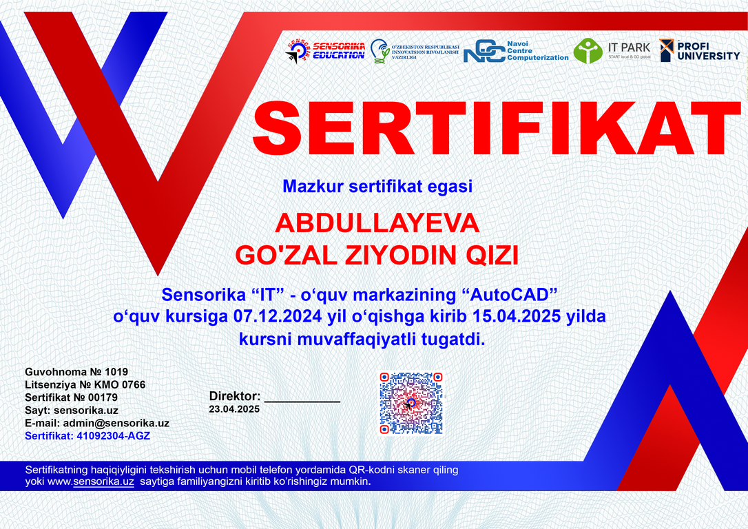 Sertifikat raqami: 41092304-AGZ