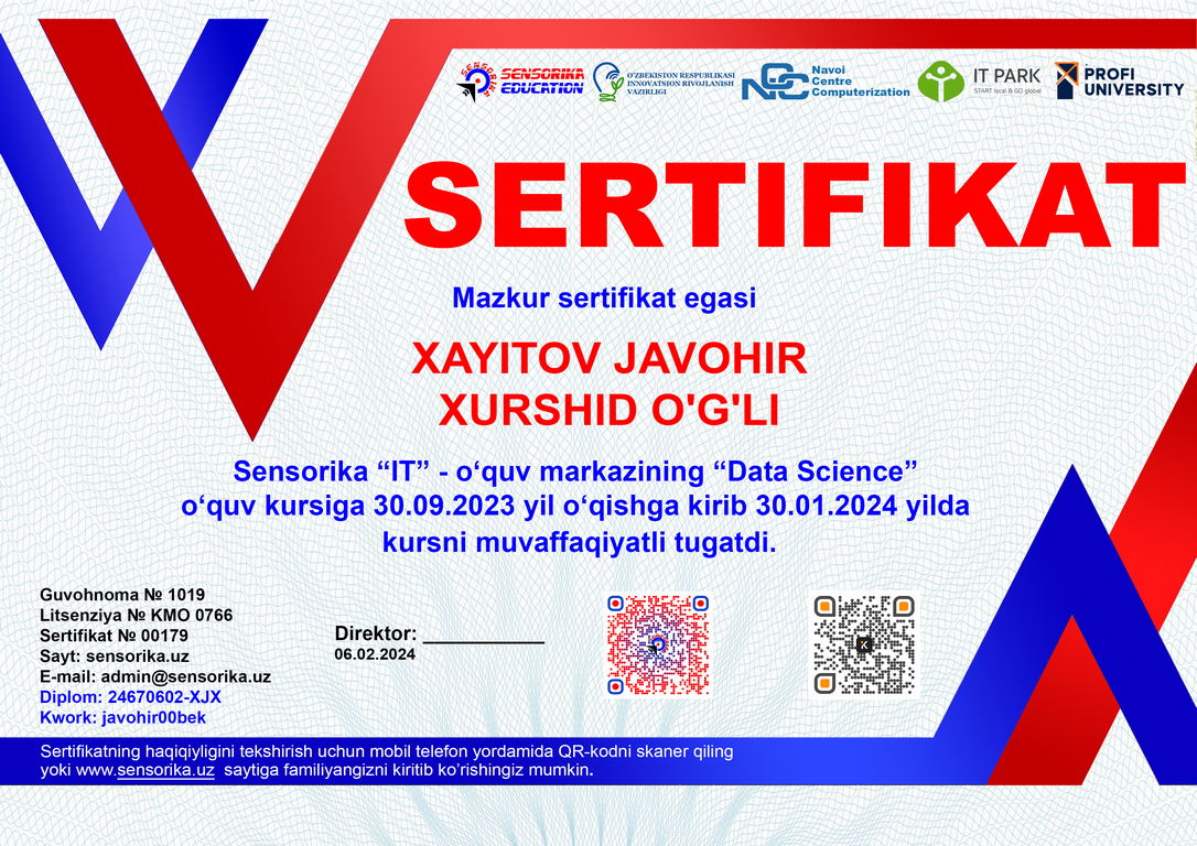 Sertifikat raqami: 24670602-XJX