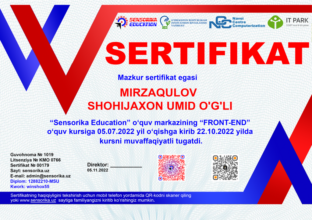 Sertifikat raqami: 12882210-MSU