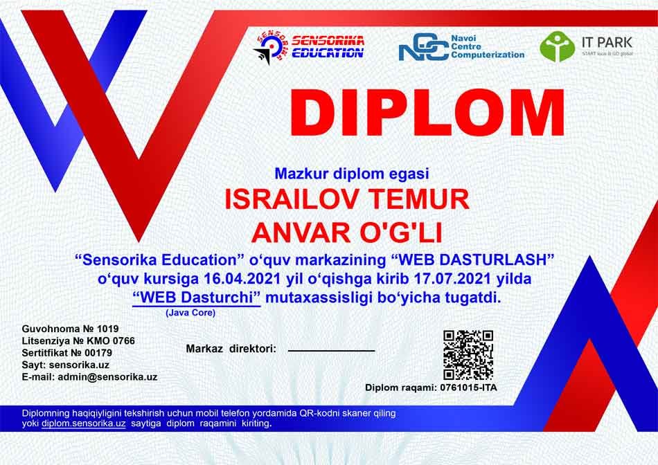 Sertifikat raqami: 0761015-ITA