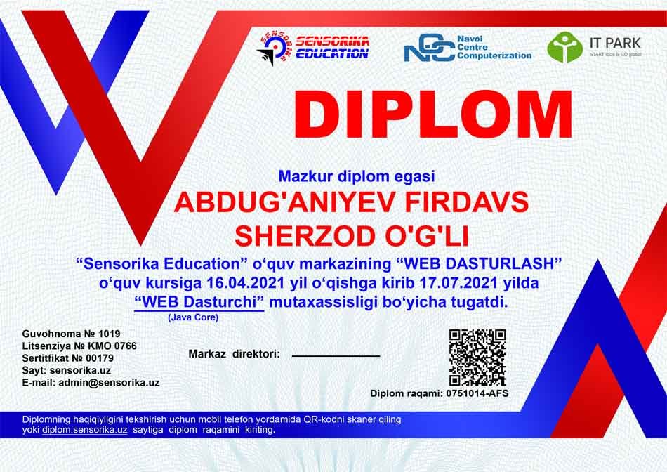 Sertifikat raqami: 0841023-SDO