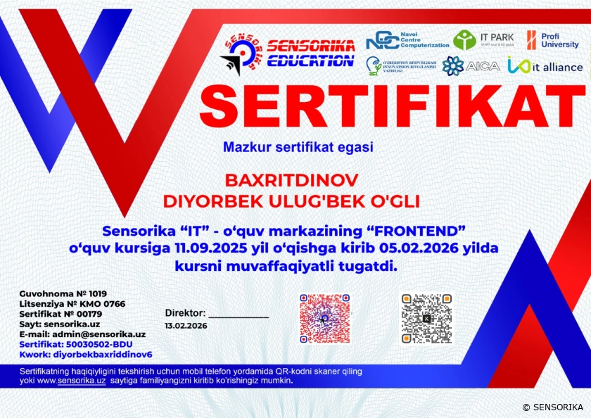 Sertifikat raqami: 50030502-BDU