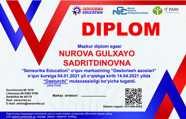 Sertifikat raqami: 0311404-NGS