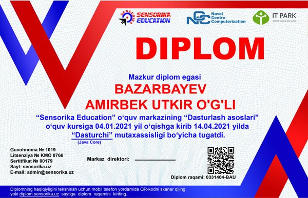 Sertifikat raqami: 0331404-BAU