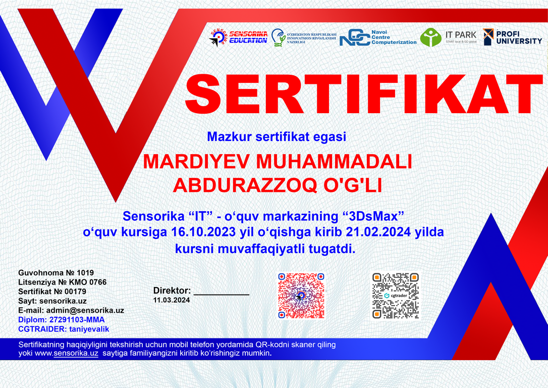 Sertifikat raqami: 27291103-MMA