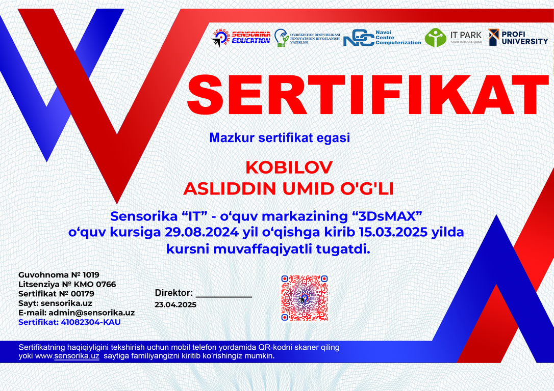 Sertifikat raqami: 41082304-KAU