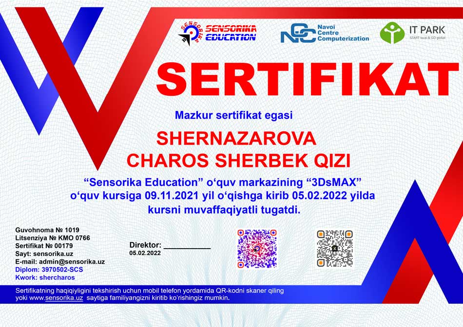 Sertifikat raqami: 3970502-SCS