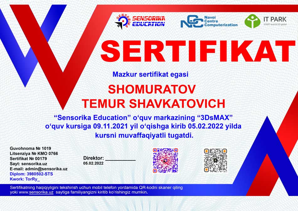 Sertifikat raqami: 3980502-STS