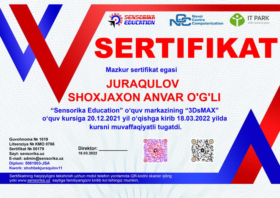 Sertifikat raqami: 5081803-JSA