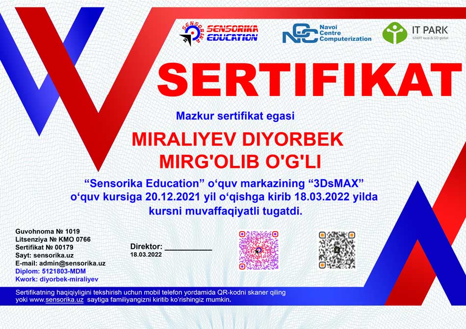 Sertifikat raqami: 5121803-MDM