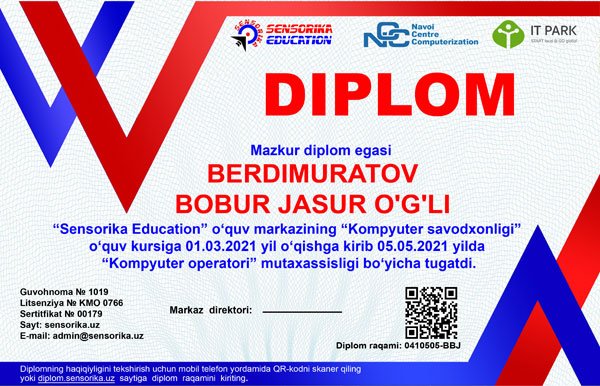 Sertifikat raqami: 0410505-BBJ