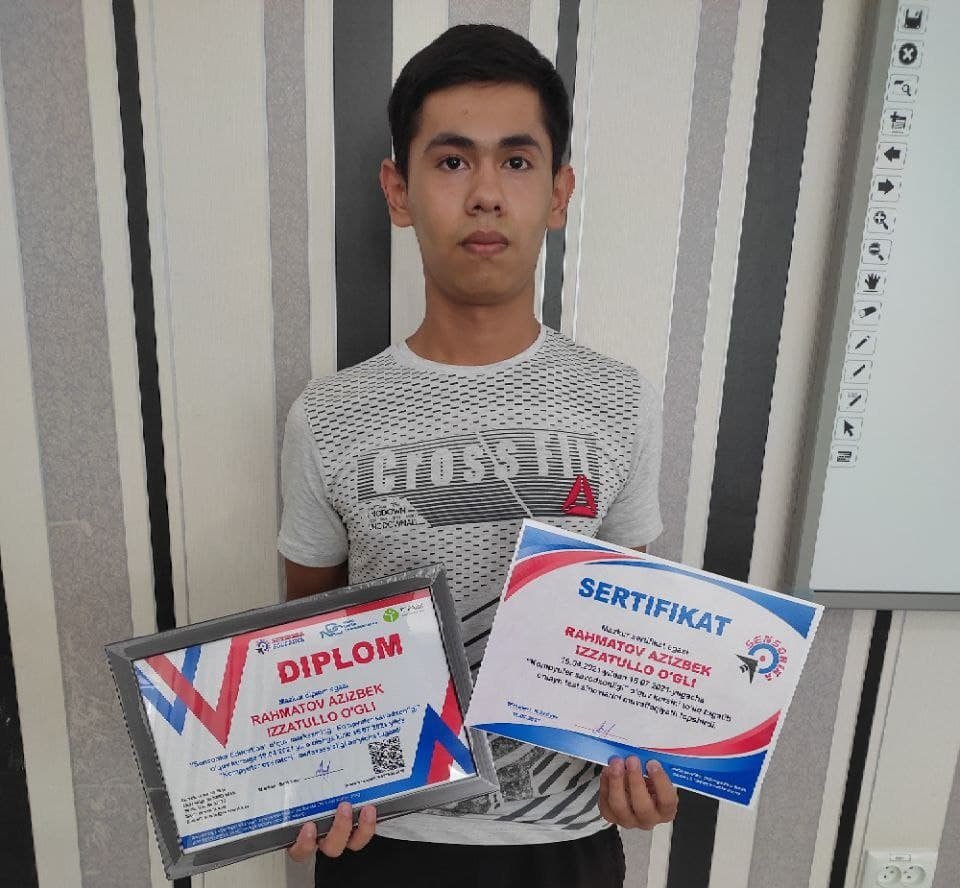 16.07.2021-yilda “Kompyuter savodxonligi” o‘quv kursini to‘liq tugatib onlayn test sinovlarini muvaffaqiyatli topshirdi.