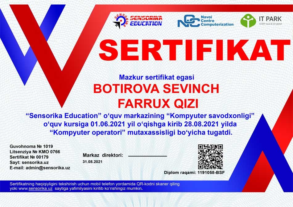 Sertifikat raqami: 1191058-BSF