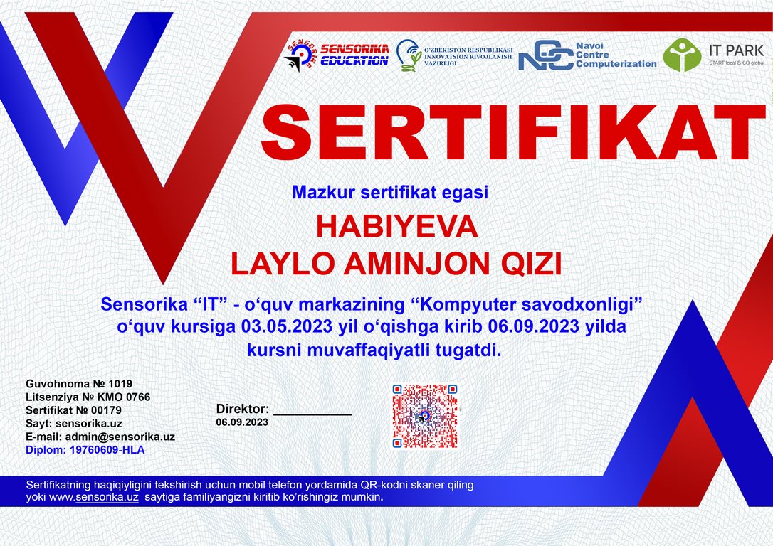 Sertifikat raqami: 19760609-HLA