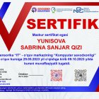 Sertifikat raqami: 20442909-YSS