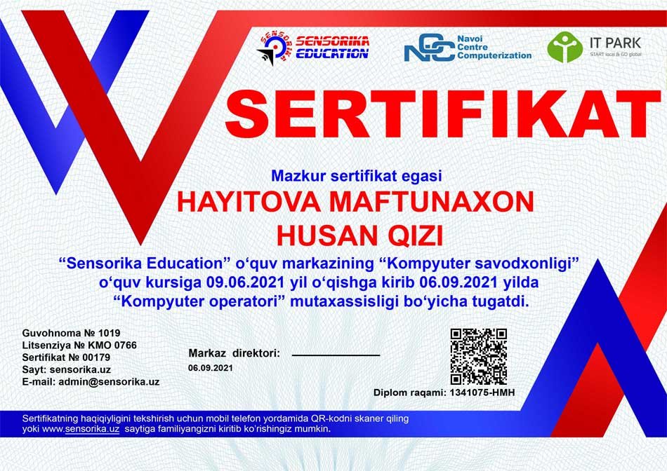 Sertifikat raqami: 1341075-HMH