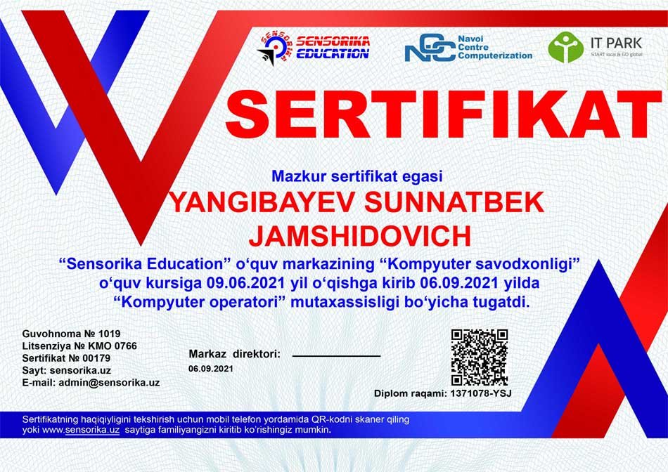 Sertifikat raqami: 1371078-YSJ