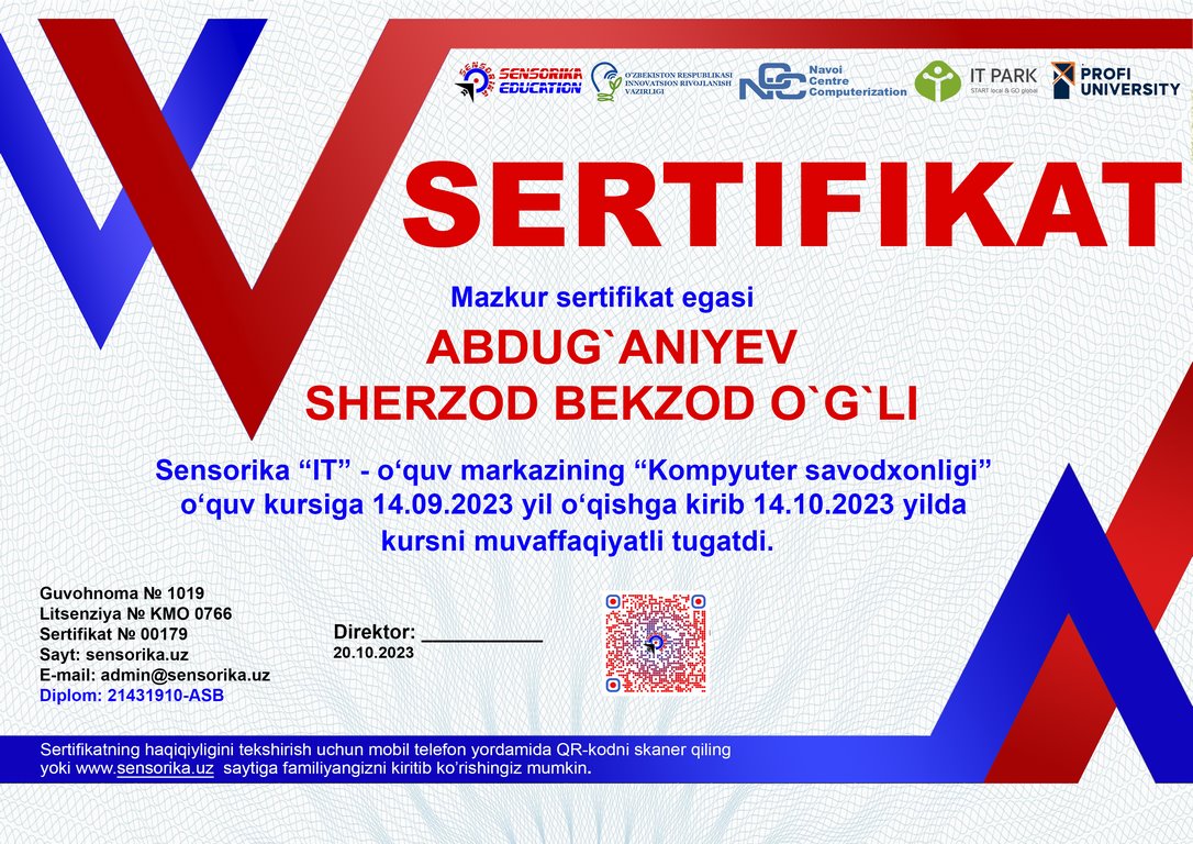 Sertifikat raqami: 21431910-ASB