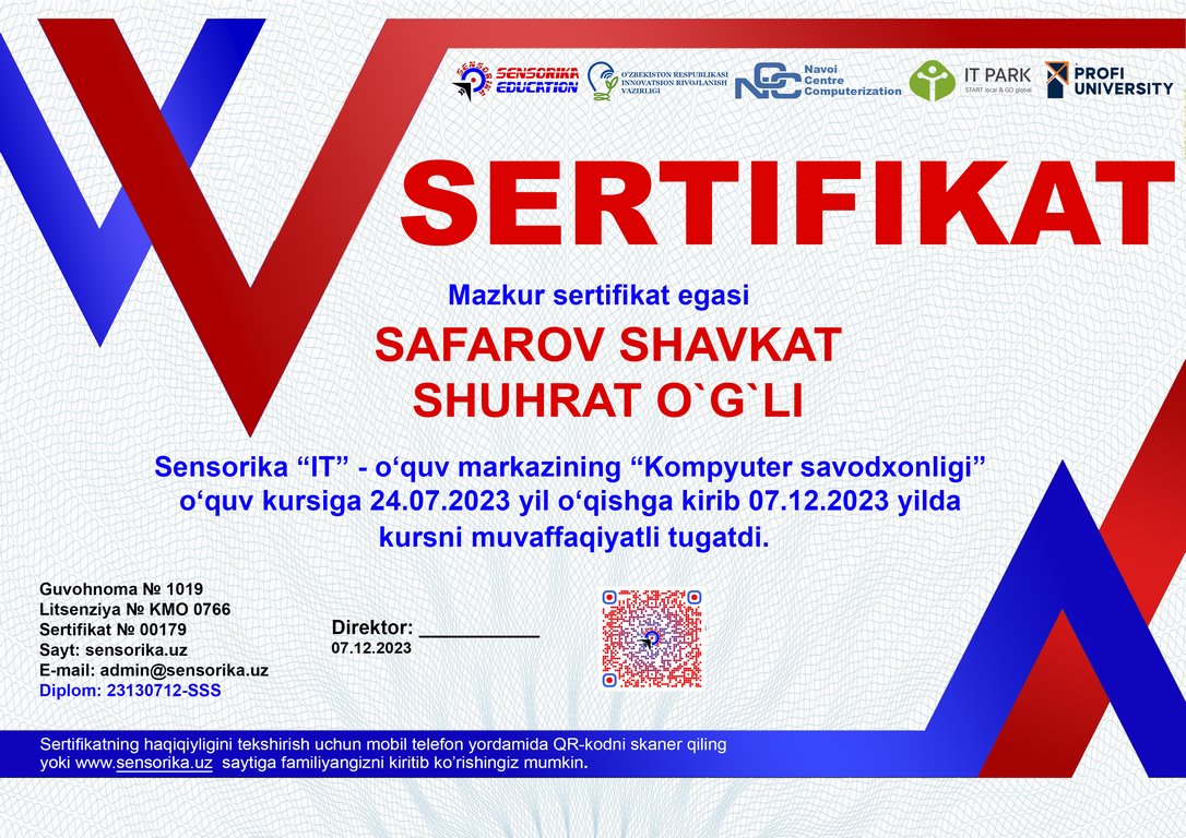 Sertifikat raqami: 23130712-SSS