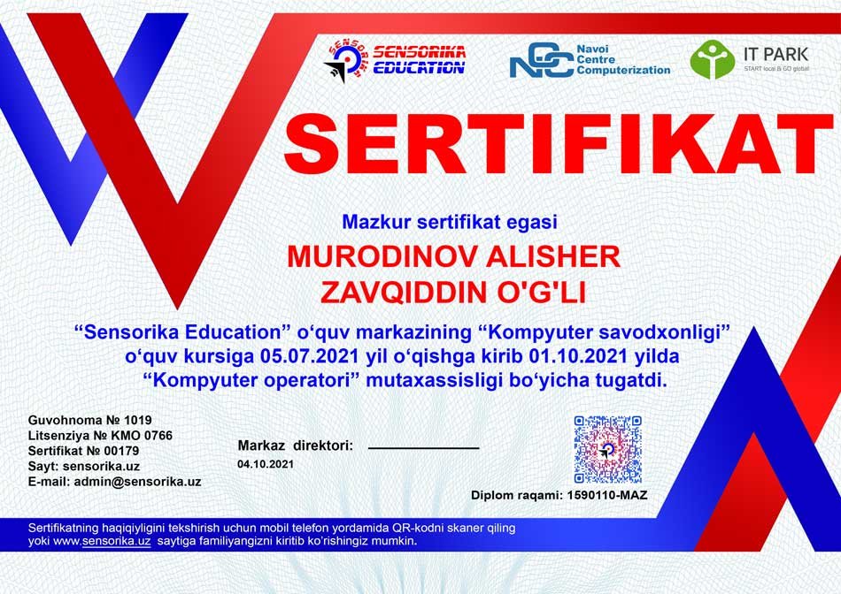 Sertifikat raqami: 1590110-MAZ