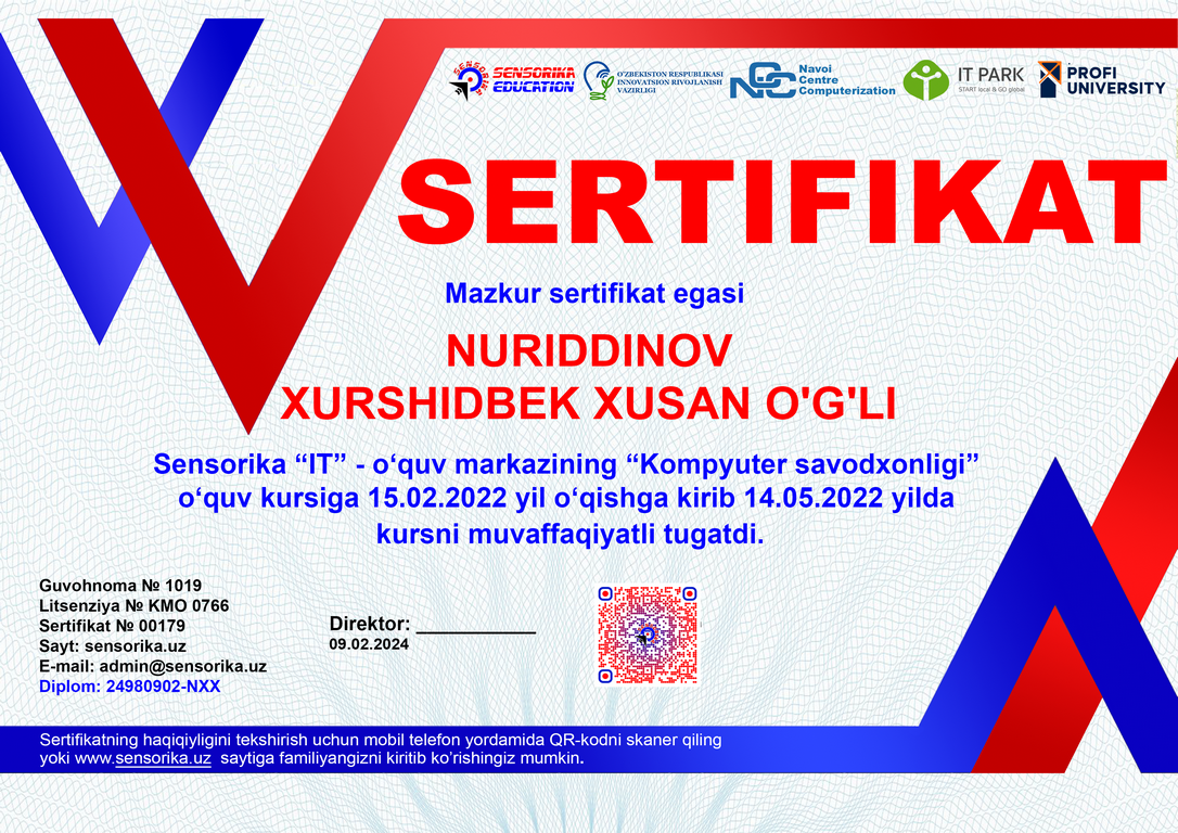 Sertifikat raqami: 24980902-NXX