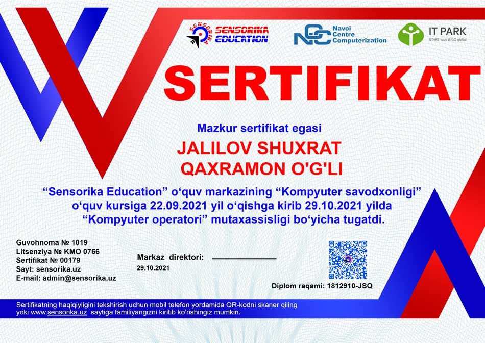 Sertifikat raqami: 1812910-JSQ