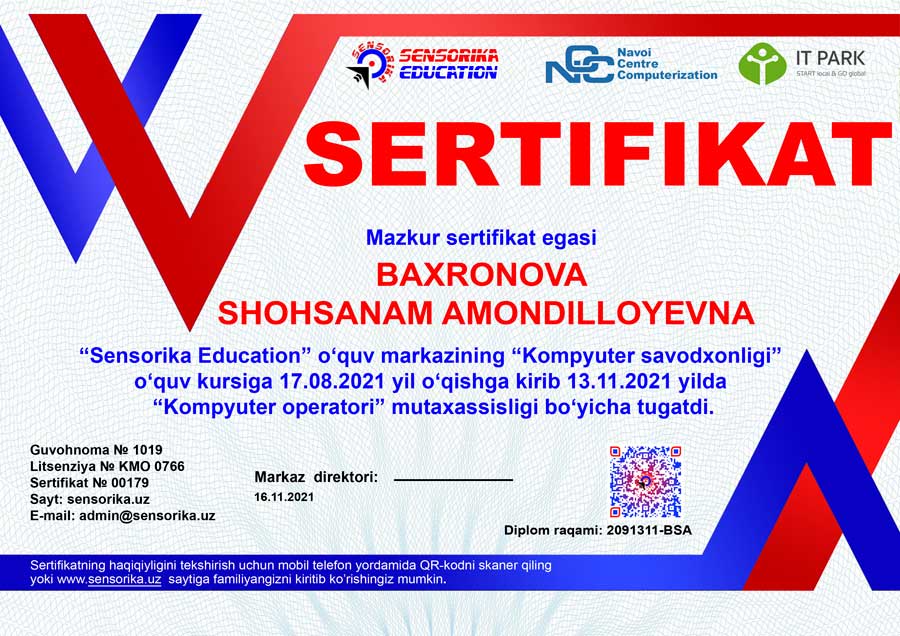 Sertifikat raqami: 2091311-BSA