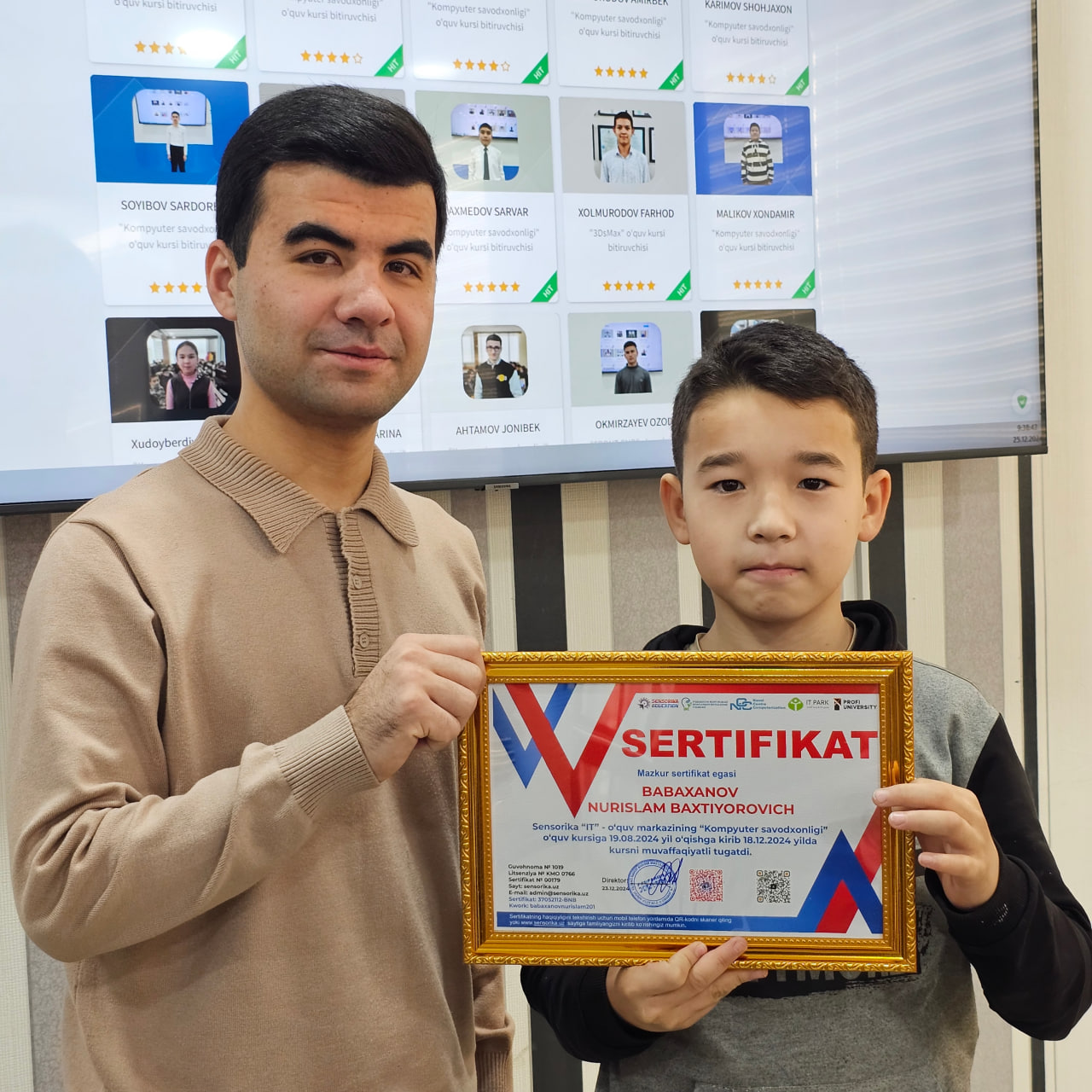 Bizning aziz do'stimiz, sizning bu kunga kelguningizga juda xursandmiz! Sizning mehnatingiz, tirishqoqligingiz va har qanday vaziyatda o'zingizni namoyon qilish qobiliyatingiz bizni doim hayratda qoldirdi. Bu sertifikat sizning yutuqlaringizning faqat boshlanishi, chunki biz bilamizki, siz kelajakda yanada katta muvaffaqiyatlarga erishishingiz aniq. Do'stingiz sifatida siz bilan faxrlanamiz va sizga har doim yordam berishga tayyormiz. Yana bir bor chin qalbimizdan tabriklaymiz! 🎉💐