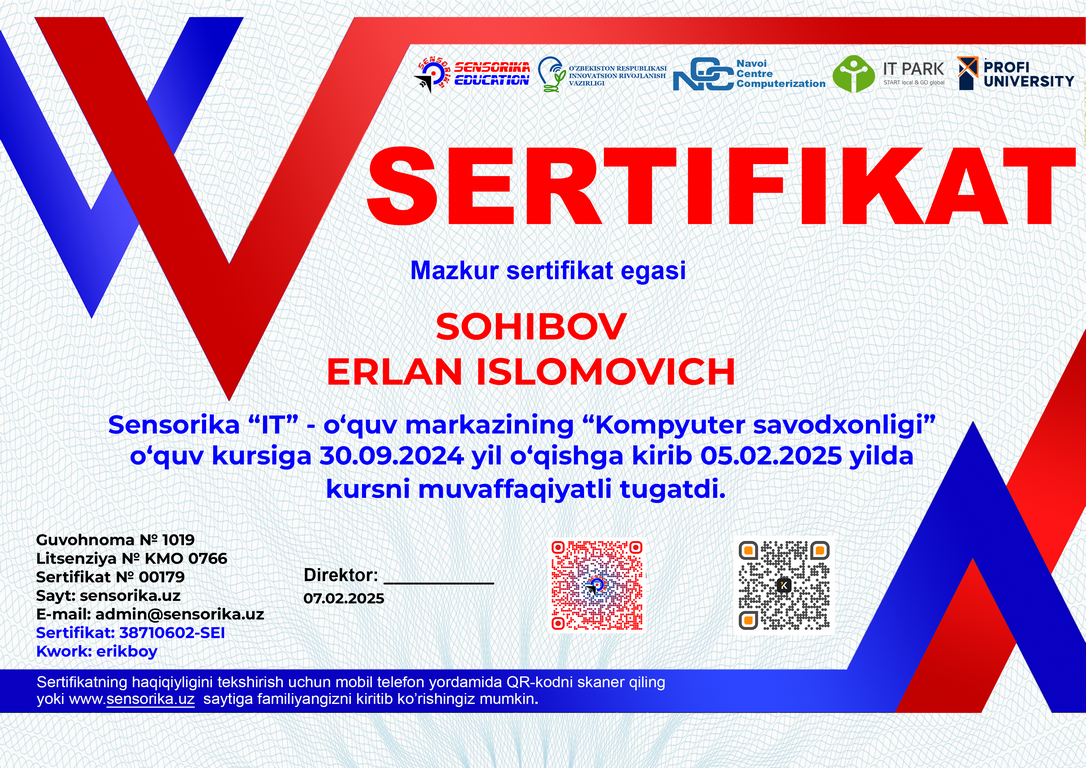 Sertifikat raqami: 38710602-SEI