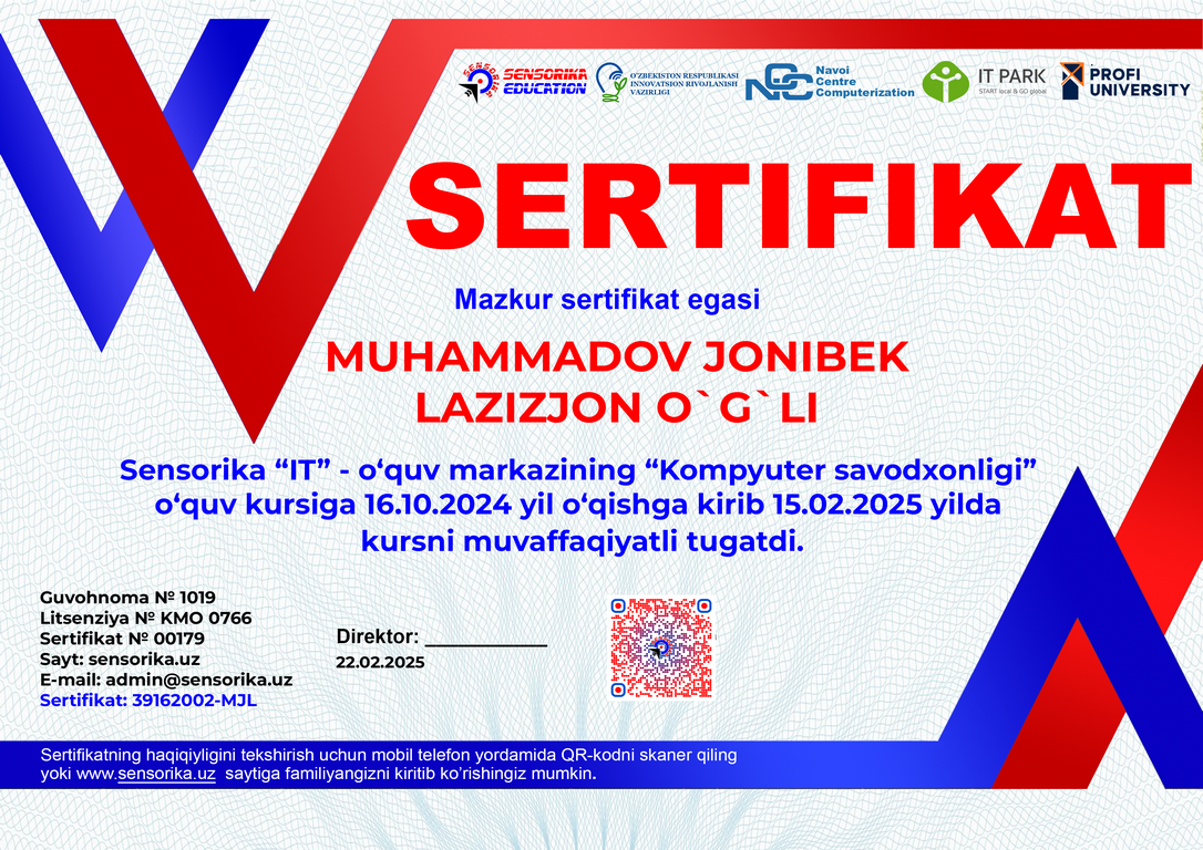 Sertifikat raqami: 39162002-MJL