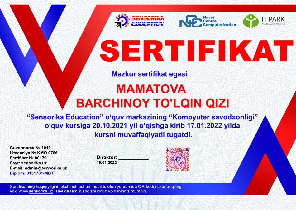 Sertifikat raqami: 3151701-MBT
