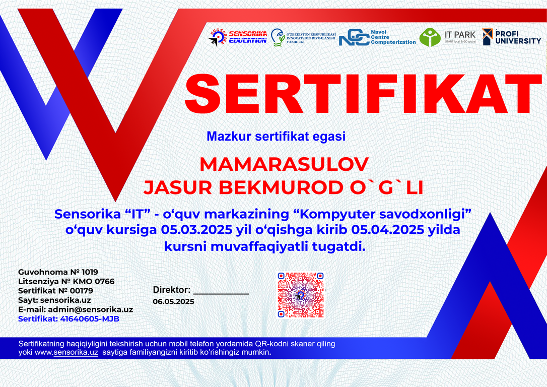 Sertifikat raqami: 41640605-MJB