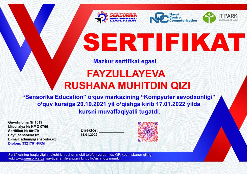 Sertifikat raqami: 3321701-FRM