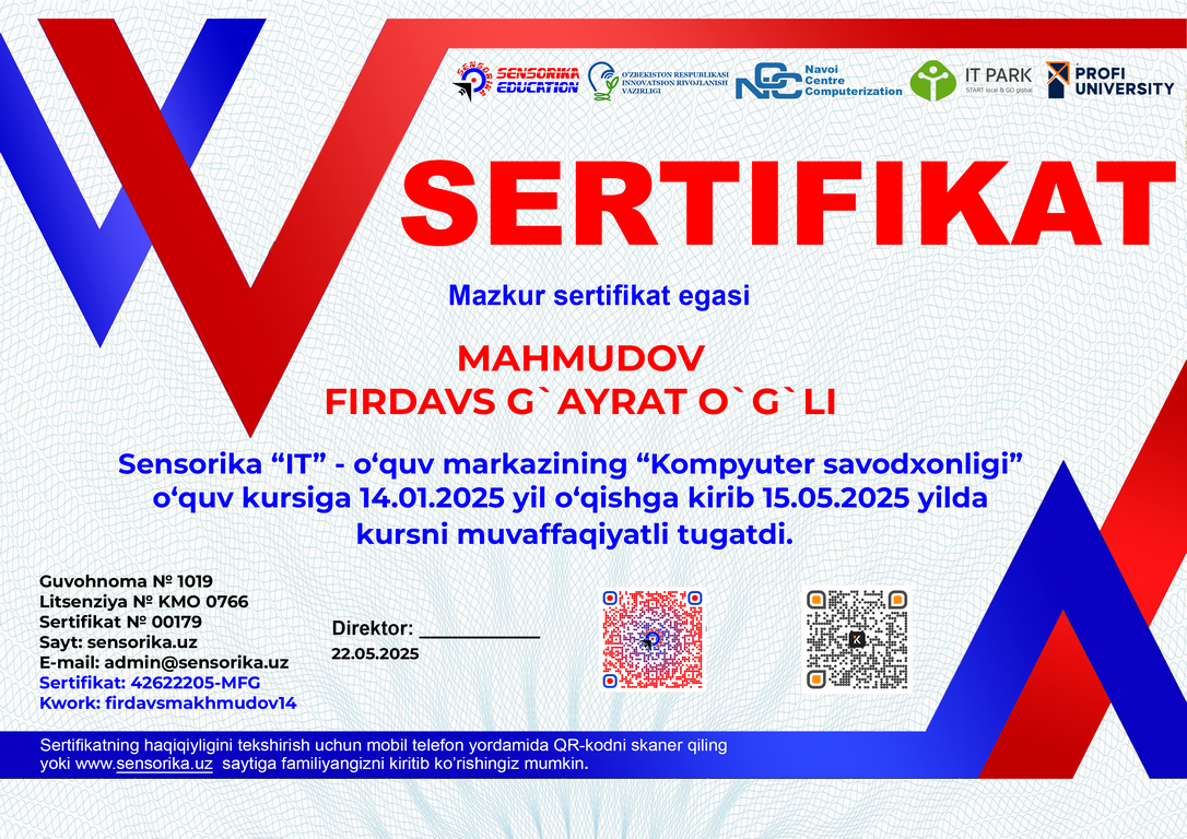 Sertifikat raqami: 42622205-MFG