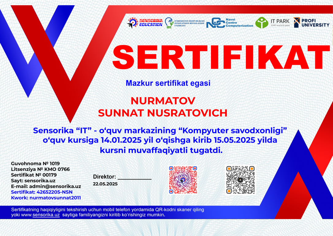 Sertifikat raqami: 42652205-NSN