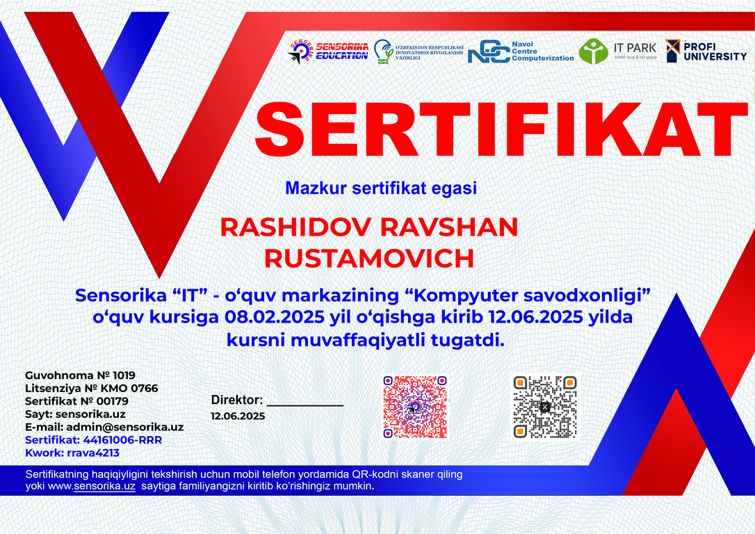 Sertifikat raqami: 44161006-RRR