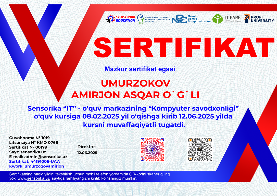 Sertifikat raqami: 44191006-UAA