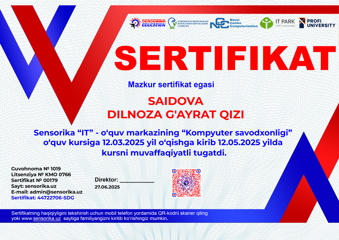 Sertifikat raqami: 44722706-SDG