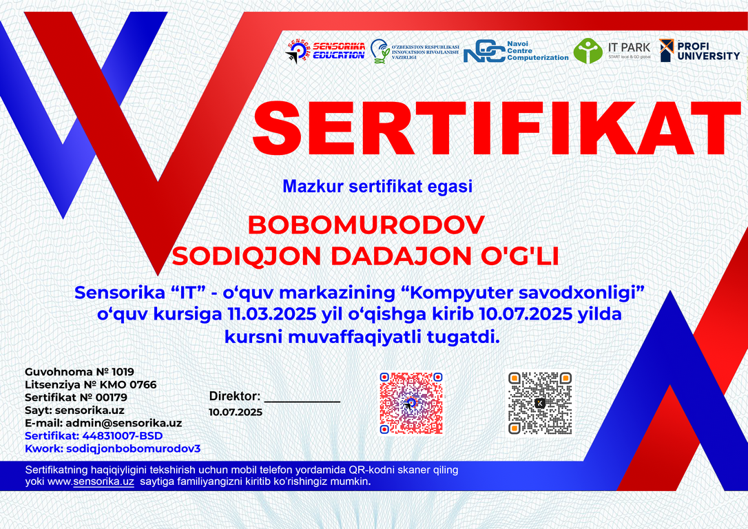 Sertifikat raqami: 44831007-BSD