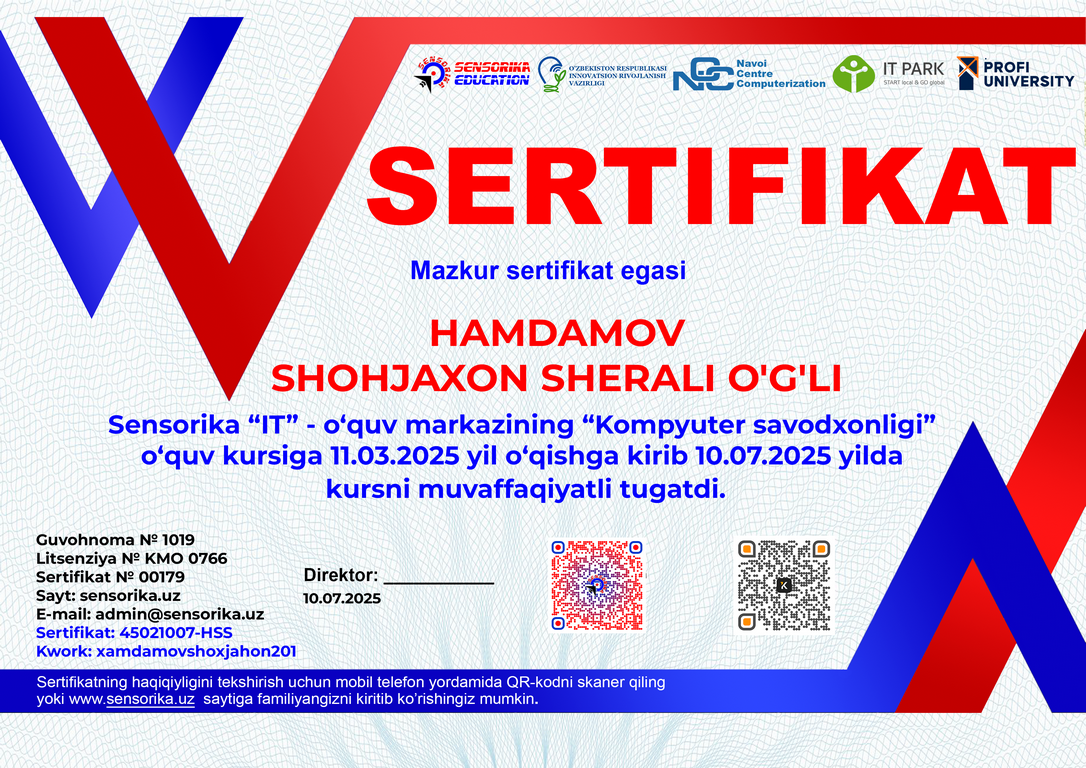 Sertifikat raqami: 45021007-HSS