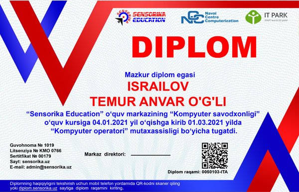Sertifikat raqami: 0050103-ITA