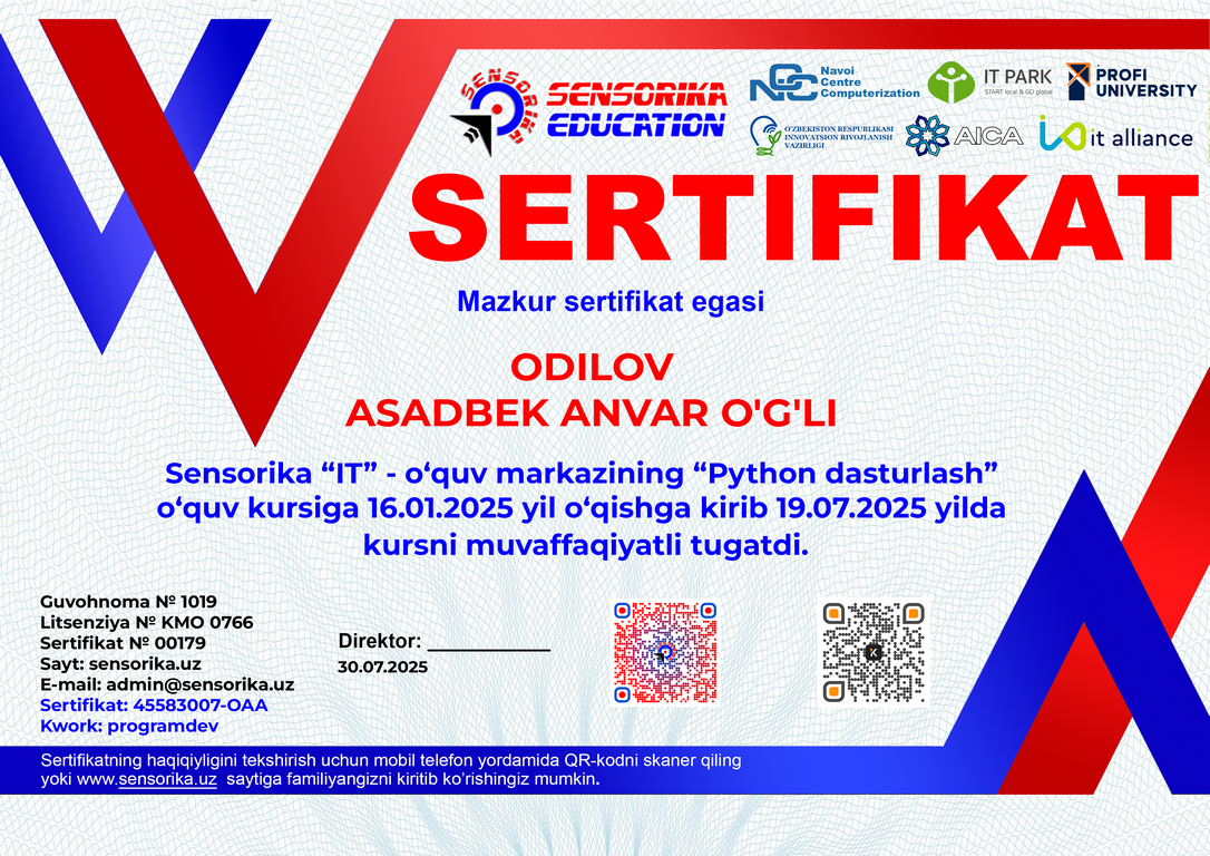 Sertifikat raqami: 45583007-OAA