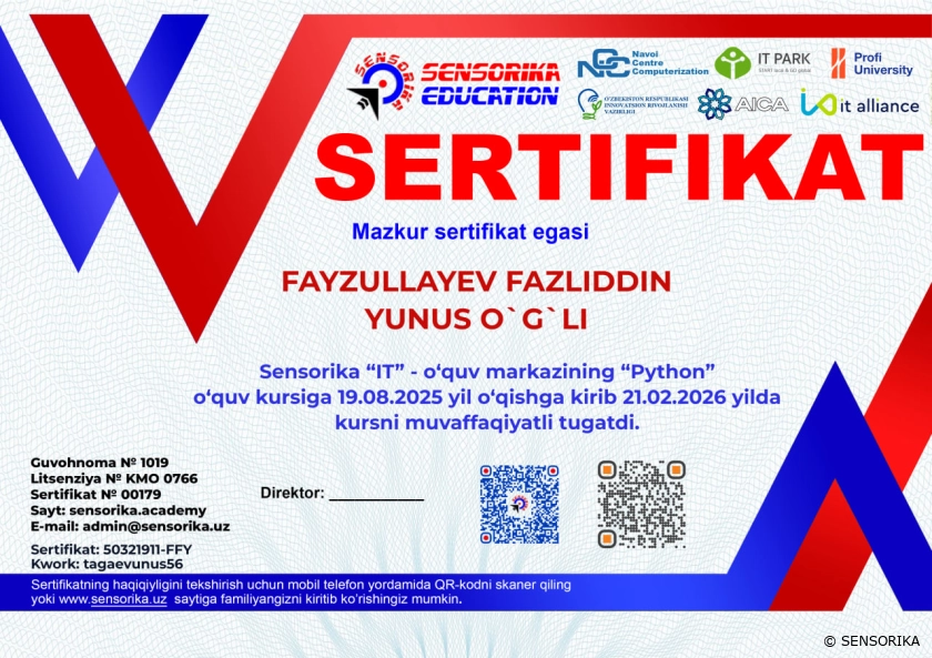 Sertifikat raqami: 50171911-FFY