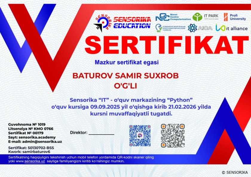 > BATUROV SAMIR SUXROB O'G'LI