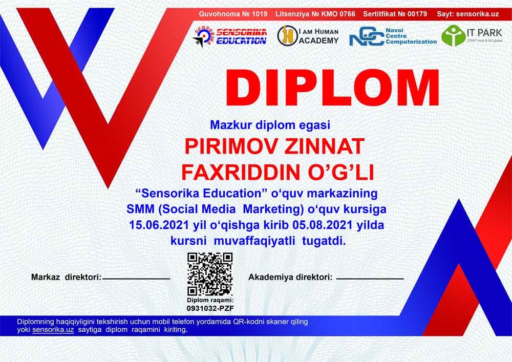 Sertifikat raqami: 0931032-PZF