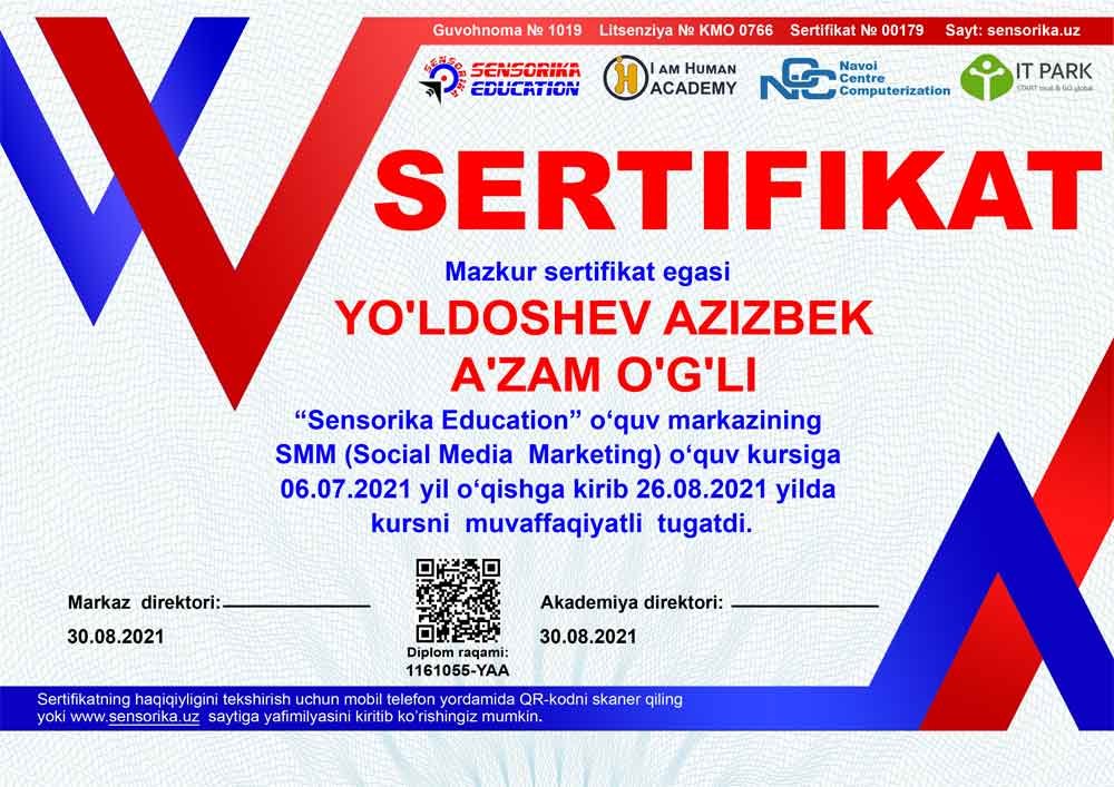 Sertifikat raqami: 1161055-YAA