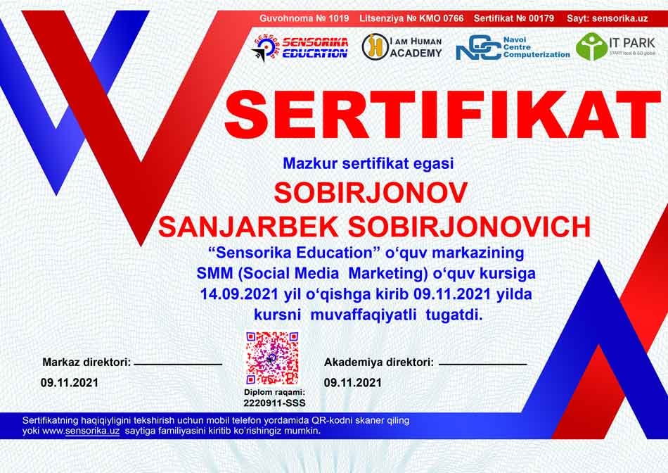 Sertifikat raqami: 2220911-SSS